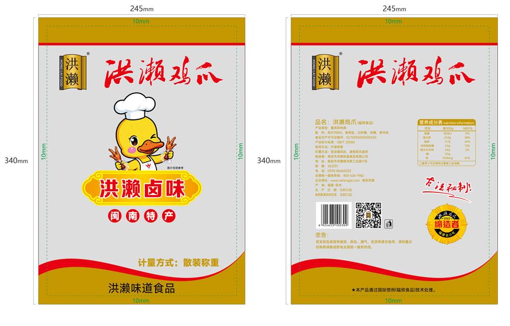 MORE + 洪瀨雞爪創(chuàng)立于2002年,2001年向國(guó)家商標(biāo)總局申請(qǐng)注冊(cè)“洪瀨雞爪”商標(biāo),2002年"洪瀨雞爪"商標(biāo)注冊(cè)成功,之后多年在閩南泉州這片有著深厚飲食文化底蘊(yùn)的土地上用“前店后廠”批發(fā)的形式出現(xiàn),主要從事雞爪為主的醬鹵系列食品生產(chǎn)銷售。